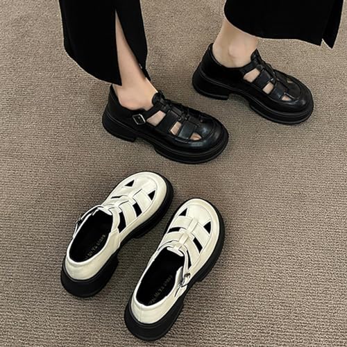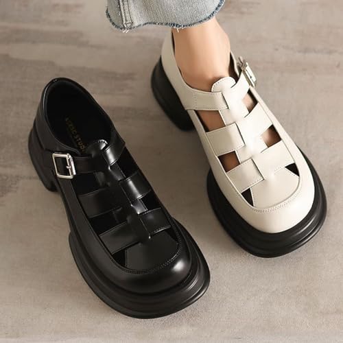 HOT ! Women'S Leather Braid Caged Platform Fisherman Sandals, Summer Closed Round Toe Adjustable Ankle Strap Hollow Out Chunky Gladiator Sandals Casual Beach Y2k Sandals