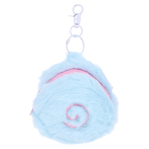 LUOZZY Cute Cartoon Round Plush Coin Purse with Zipper Kawaii Keychain Pendant for Earphones Data Cables Blue 1