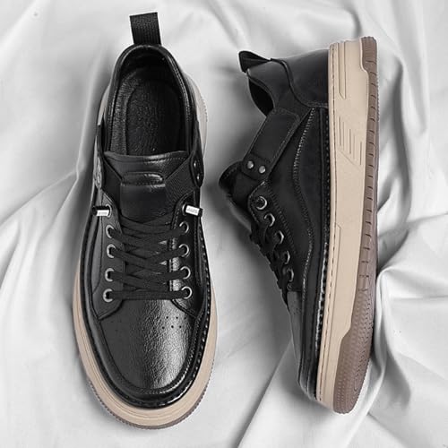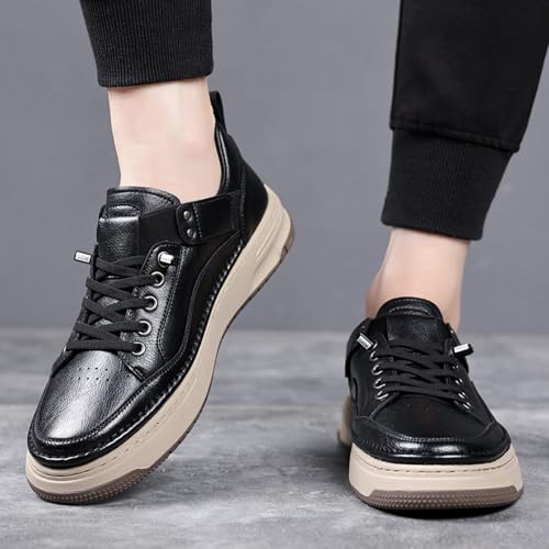 Men's Genuine Leather Round Toe Breathable Platform Fashion Sneakers Retro Comfortable Low Top Lace-Up Non-Slip Soft Sole Casual Walking Shoes Dress Daily Flat Skate Shoes 6