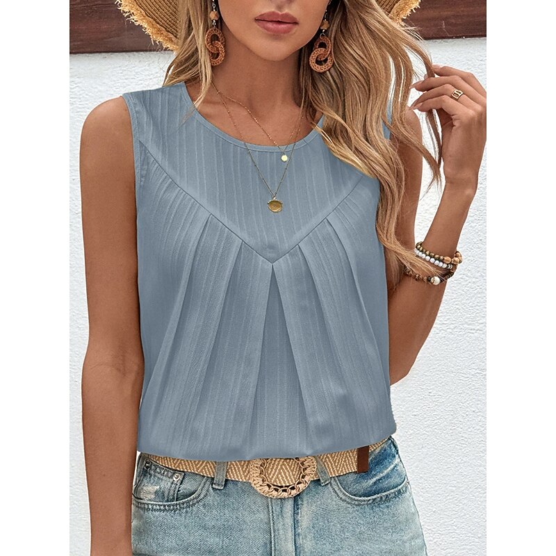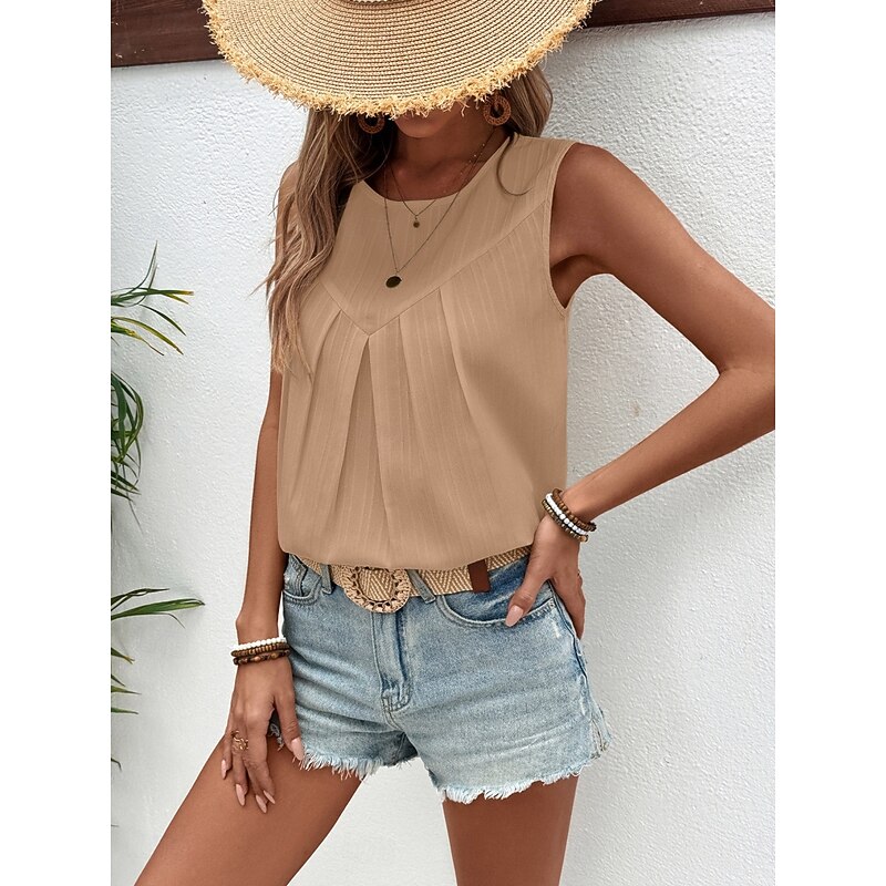 Women's Camisole Tank Top Solid Color Stylish Casual Sleeveless Crew Neck Regular Tops Daily Sky Blue Green Khaki Beige Summer 14