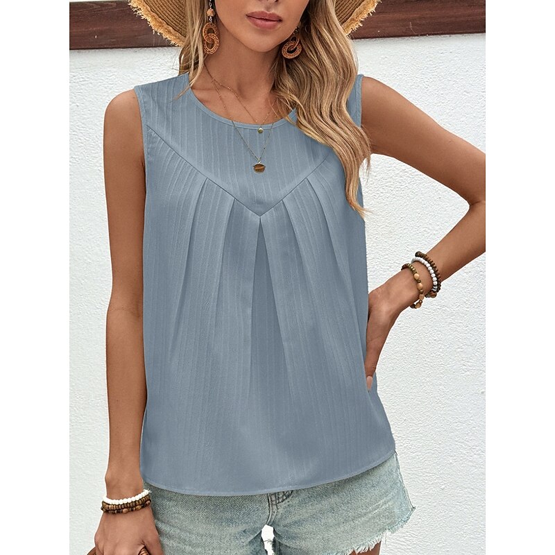 More information about Women's Camisole Tank Top Solid Color Stylish Casual Sleeveless Crew Neck Regular Tops Daily Sky Blue Green Khaki Beige Summer