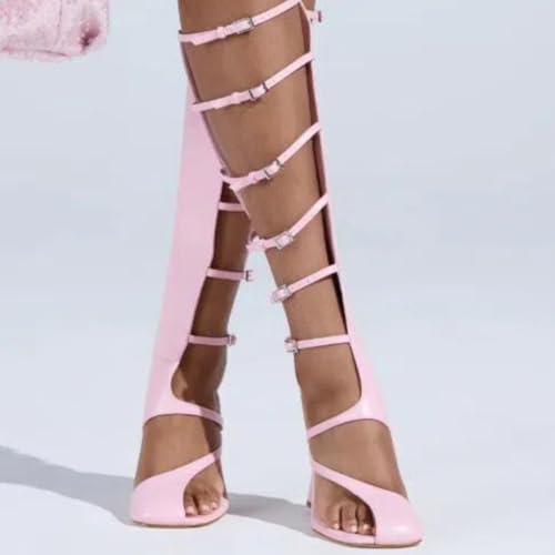 Women's Square Toe Special High Heels Side Zipper Adjustable Buckles Heeled Sandals 6