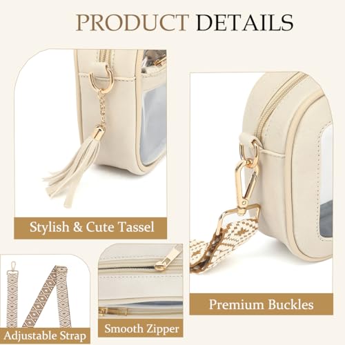 • Perfect Size Clear Purse: Measuring 8.46L x 2.83W x 5.92H inches, the clear bag for stadium events offer ample space for essentials with a secure zipper closure. Not to small or big , this clear crossbody bag for women is perfect size for wallet, sunglasses and a few other small items