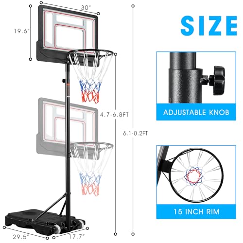 More information about Portable Basketball Hoop Outdoor, 6.9FT/10FT Adjustable Basketball Hoop for Kids and Adults in Outdoor/Indoor, with Sturdy PE Base and PET Backboard, Easy Assembly for Home Use