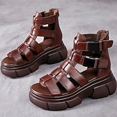HOT ! Women's Brown Chunky Gladiator Sandals with Platform Sole and Multi-Strap Design, Edgy Summer Shoes for Street Style, Festivals, and Casual Outfits