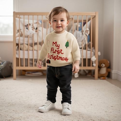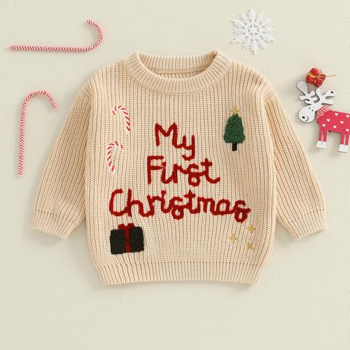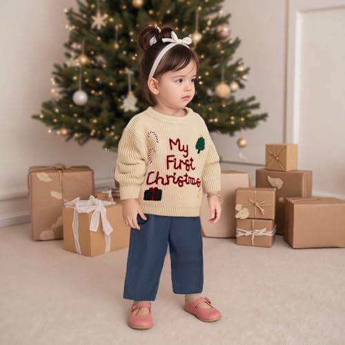 Baby Girl Boy Christmas Outfit My First Christmas Sweater Embroidery Knit Pullover Sweater cozy Fall Winter Tops