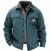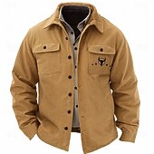 More information about Men's Cowboy Corduroy Shirt Shirt Jacket Overshirt Long Sleeve Vintage Tribal Dailywear Fall & Winter Collared Shirts Button Up 3D Print 2 Pockets 1pc Army Green Navy Blue Brown