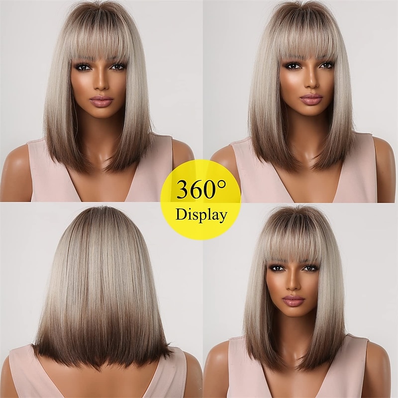 $28.99 - Brown Blonde Ombre Bob Wigs for Women Cosplay Wig with Bangs Dark Roots Gray Natural Hair Synthetic Wig 2025. Shop for cheap Synthetic Trendy Wigs online? Buy at lightinthebox.com on sale today!