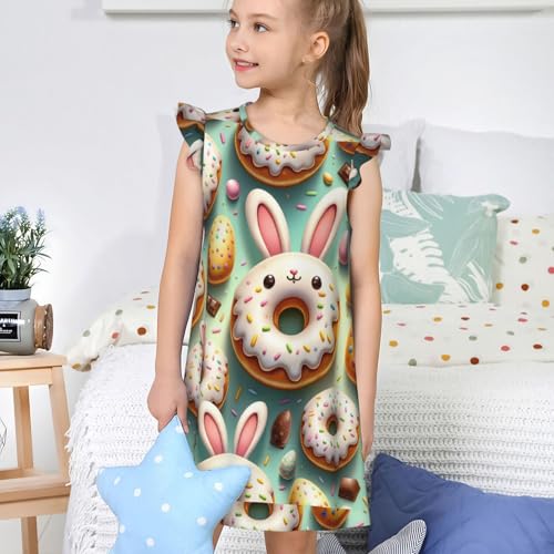 Augenstern Flutter Sleeve Nightgown Easter-Rabbit-Ears-Donuts velvety Sleepwear Nightdress