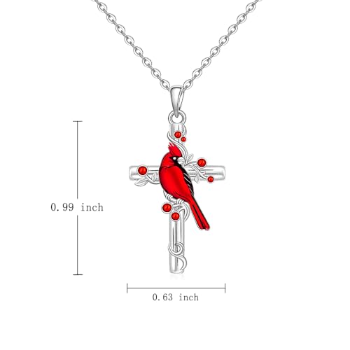 Fenthring Red Cardinal Necklace Sterling Silver Cross Cardinal Necklaces for Women Pendant Memorial Sympathy Bird Charms Mothers Day Christmas Gifts 7