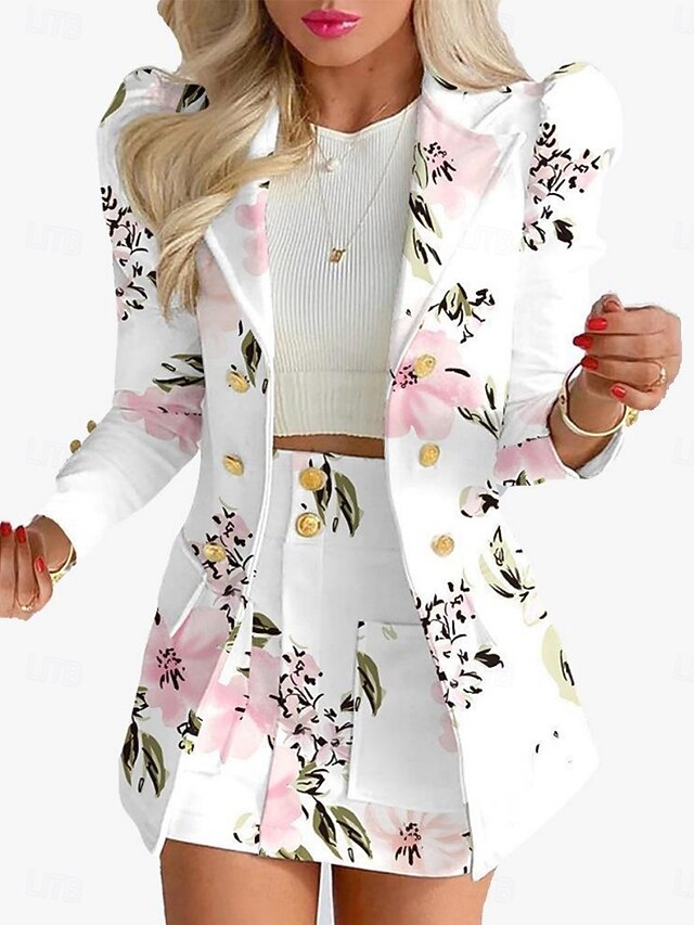 Women's Suits Blazer Comfortable Breathable Pocket Print Fashion Casual Floral Office Street Casual Daily Wear Single Breasted Short Turndown Regular Fit Long Sleeve Outerwear Black White Yellow 14
