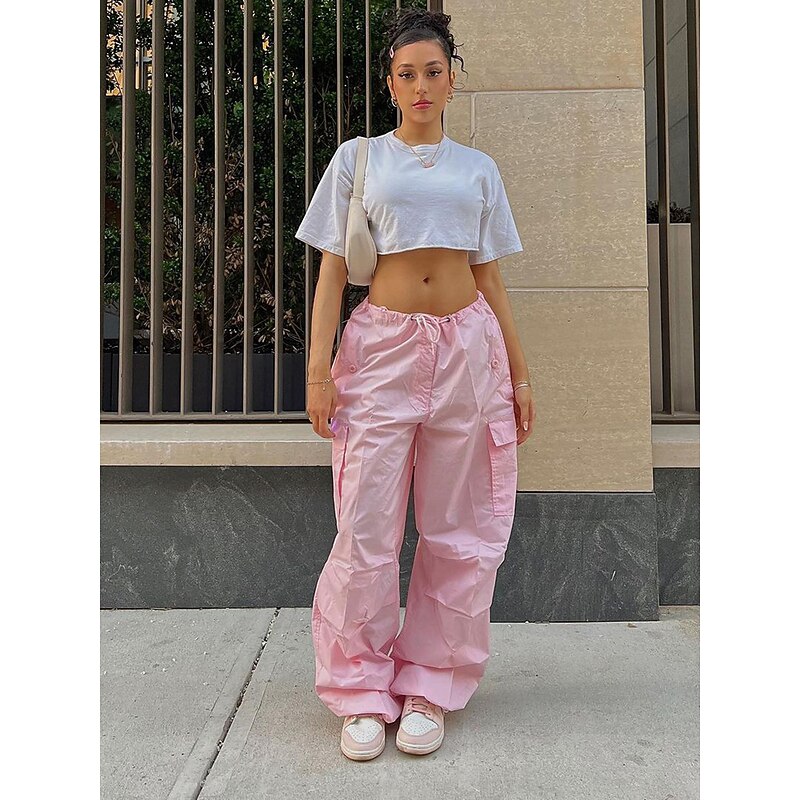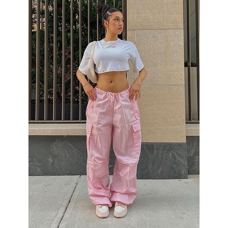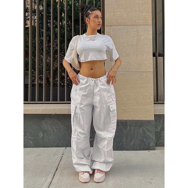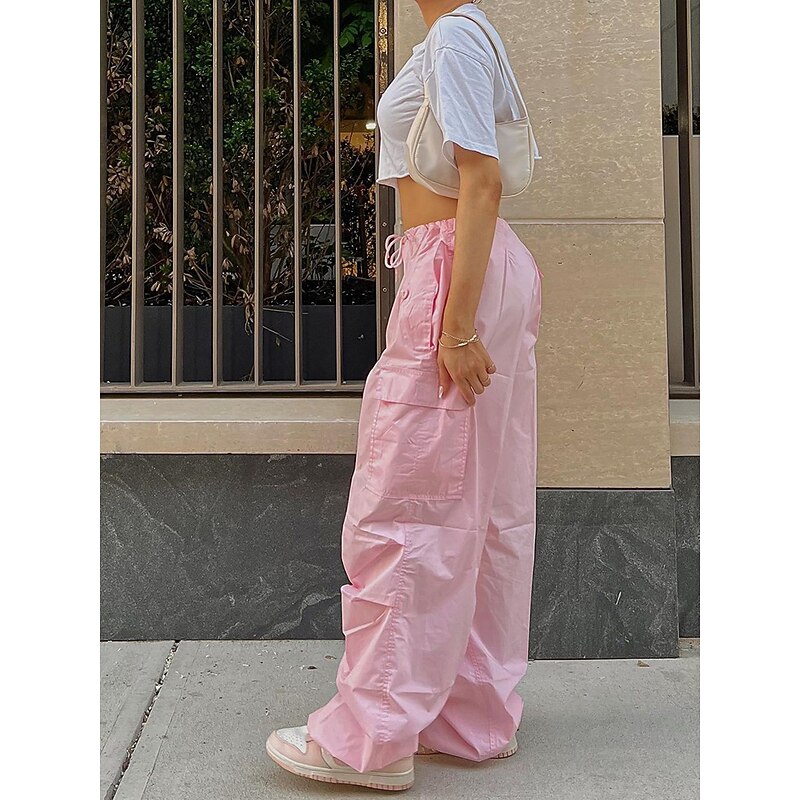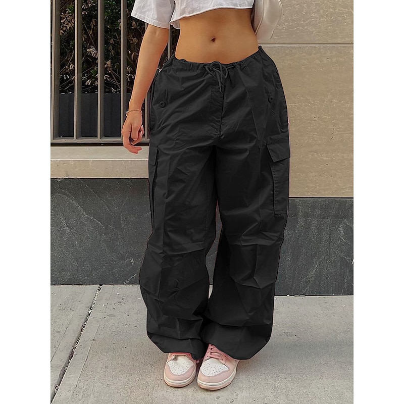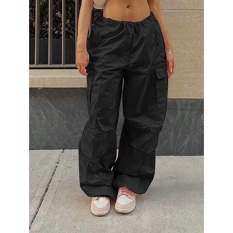 More information about Women's Cargo Pants Pants Trousers Baggy Pants Fashion Low Waist Solid Color Pocket Baggy Quick Dry Inelastic Causal Black White Pink Khaki Spring, Fall, Winter, Summer Loose Fit