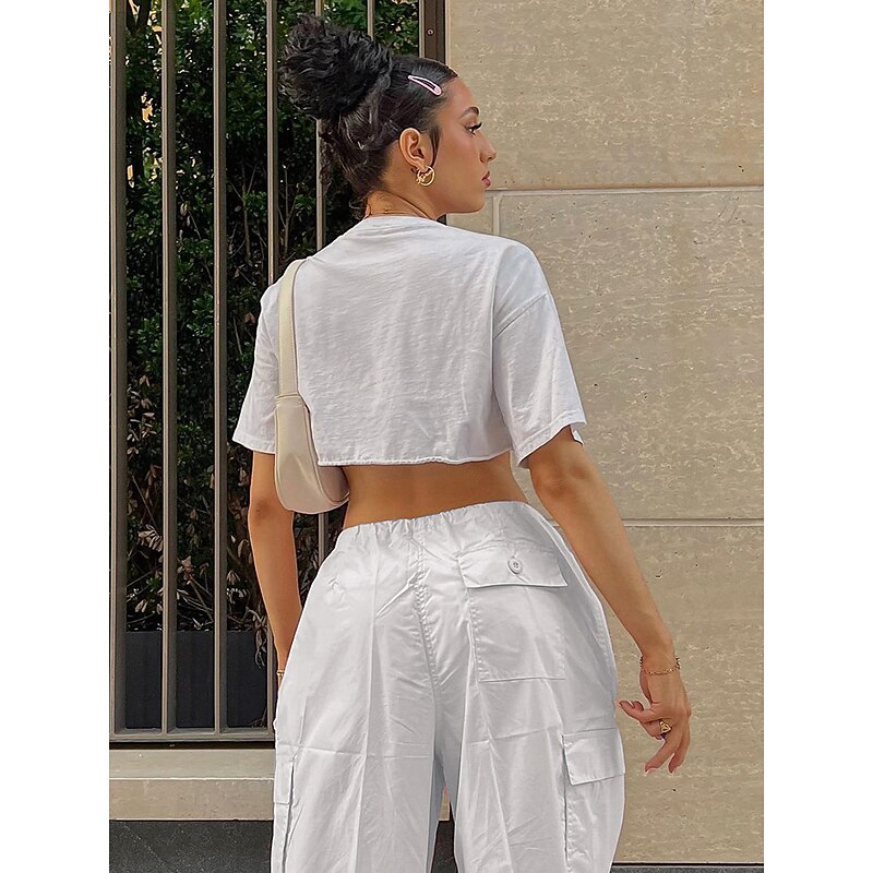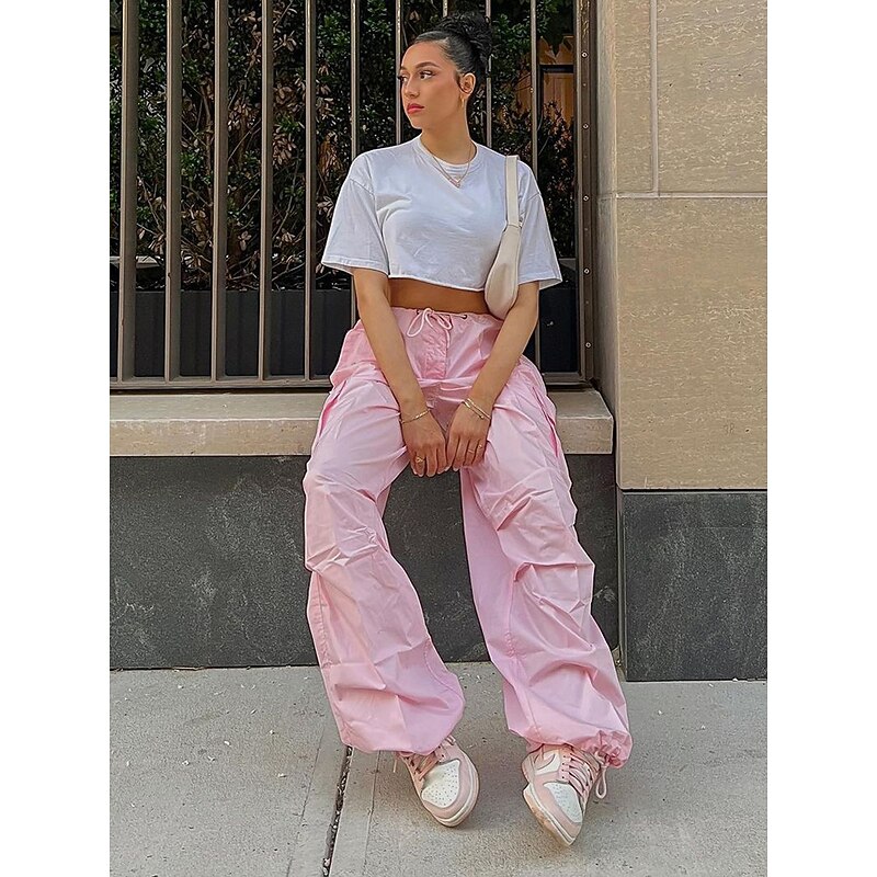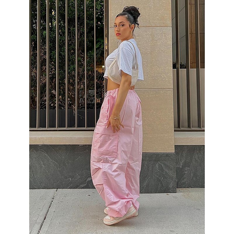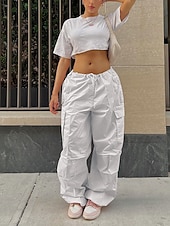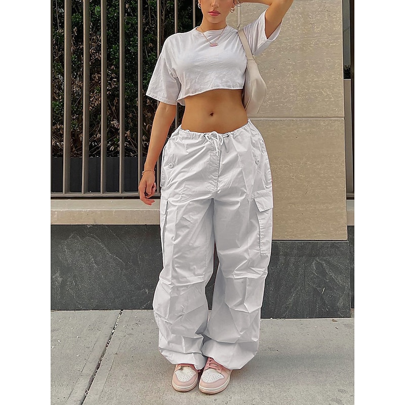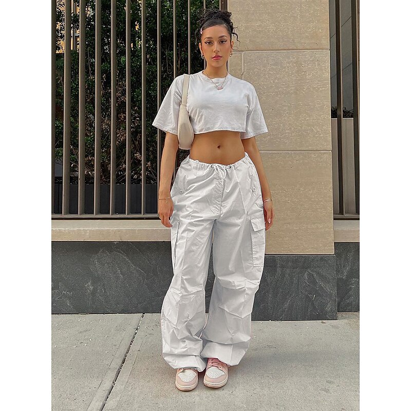More information about Women's Cargo Pants Pants Trousers Baggy Pants Fashion Low Waist Solid Color Pocket Baggy Quick Dry Inelastic Causal Black White Pink Khaki Spring, Fall, Winter, Summer Loose Fit