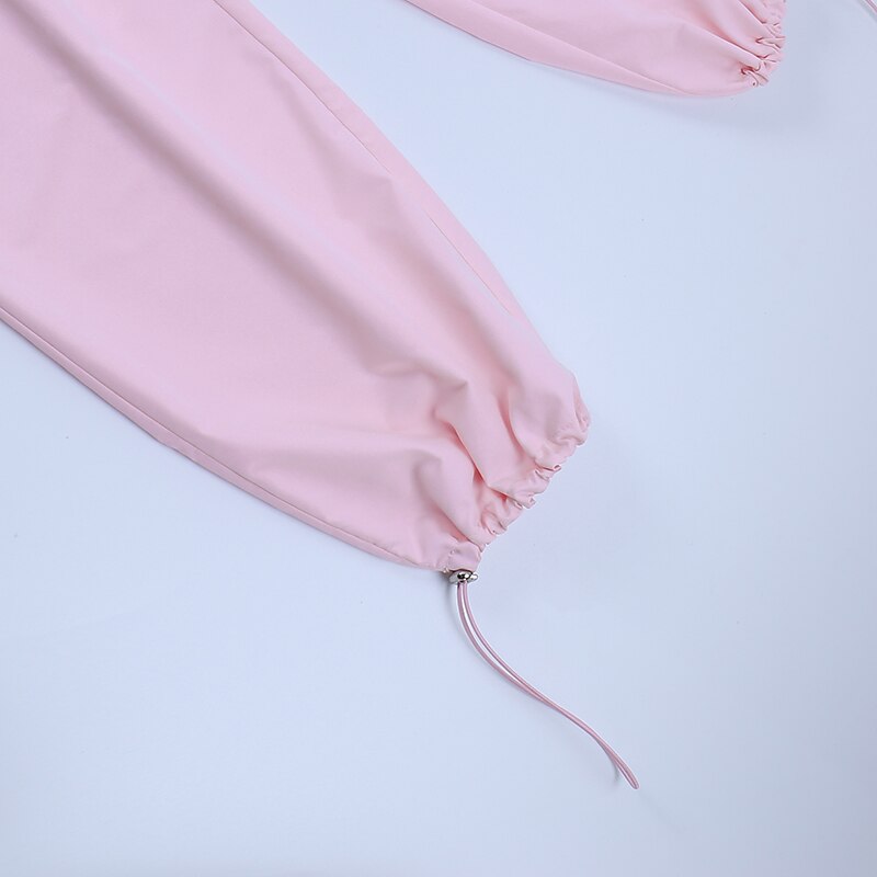 These cargo pants showcase practical large side pockets that enhance their utility and style. The low waistline and solid color design contribute to their modern, trendy aesthetic, while the pastel color options add a playful touch to any ensemble.