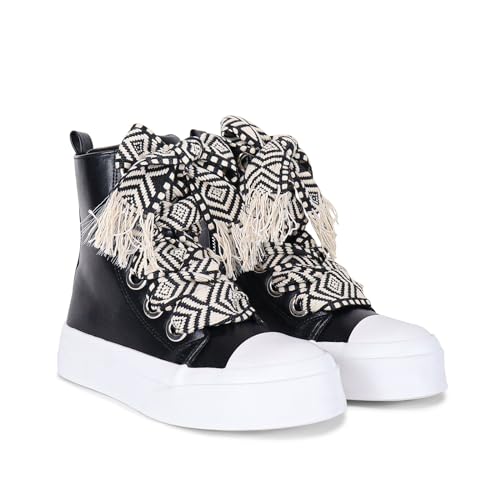 Liliana Women Platform Wide Laces High Top Sneaker with Zipper 6