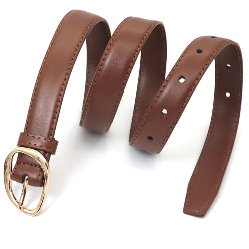 • Elegant and Versatile Women's Thin Belt: This women's thin belt features golden metal buckles, showcasing classic colors and a simple design.