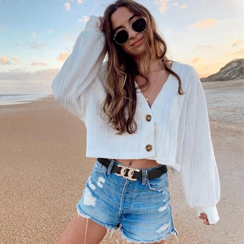• VERSATILE STYLE: This chic and versatile women's belt with a classic round gold buckle offers a simple yet elegant style. It's comfortable to wear and pairs well with dresses, jeans, and pants, making it perfect for both casual and formal occasions.
