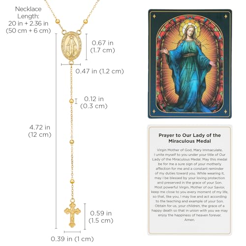 NORBU 925 Sterling Silver Rosary Bead Cross Y Necklace for Women with Miraculous Medal, Mother Mary Necklace Christian Jewelry Religious Gift for Her 4