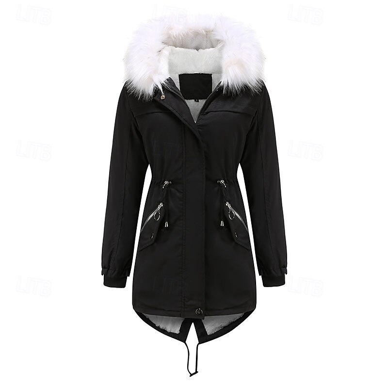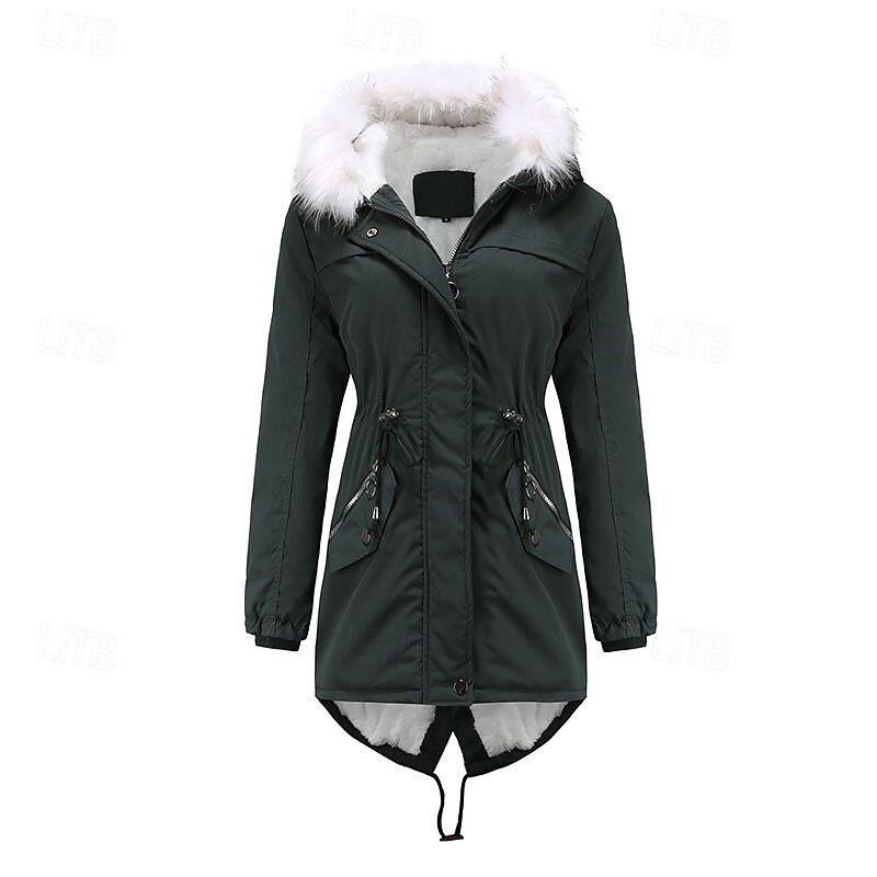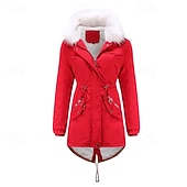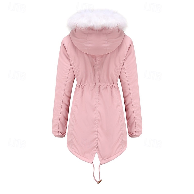 More information about Women's Winter Coat Parka Warm Comfortable Zipper Pocket With Belt Casual Plain Vacation Street Casual Daily Wear Long Hooded Regular Fit Long Sleeve Outerwear Navy Black Pink Fall Winter