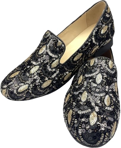 Justar Men's Vintage Sequin Loafers Slip-on Tuxedo Dress Shoes Glitter Smoking Slipper Casual Shoes for Men 6