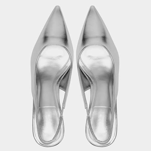 Metallic Silver Slingback Pumps Shoes for Women Kitten Heel Closed Pointed Toe Sling Back Heels Pumps 1