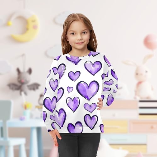 JUNZAN Purple Hearts Watercolor Cartoon Big Girls Sweatshirts Hoodies Fleece Boys Sweat Shirt Party 4T 5
