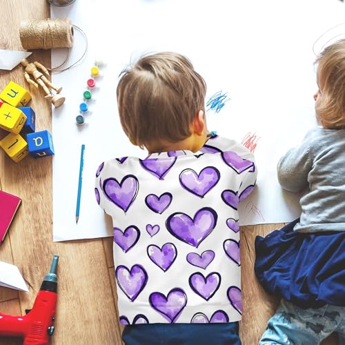 JUNZAN Purple Hearts Watercolor Cartoon Big Girls Sweatshirts Hoodies Fleece Boys Sweat Shirt Party 4T 2