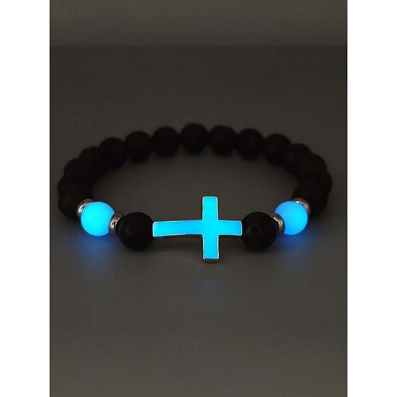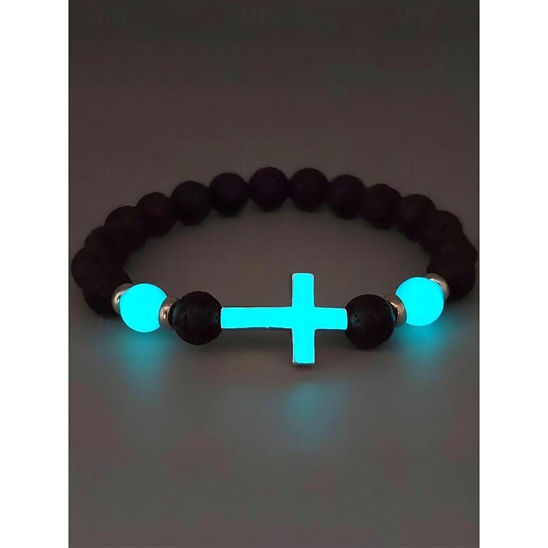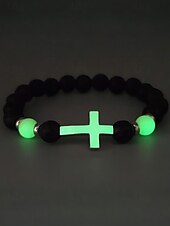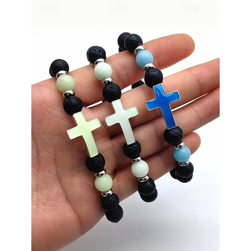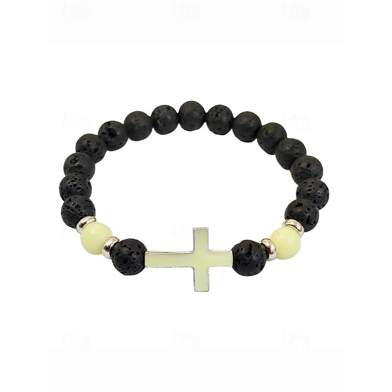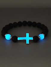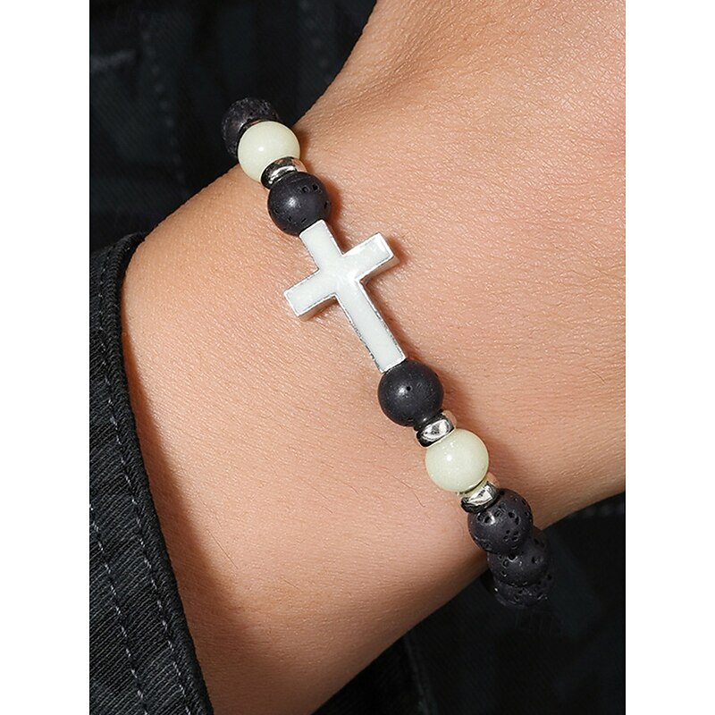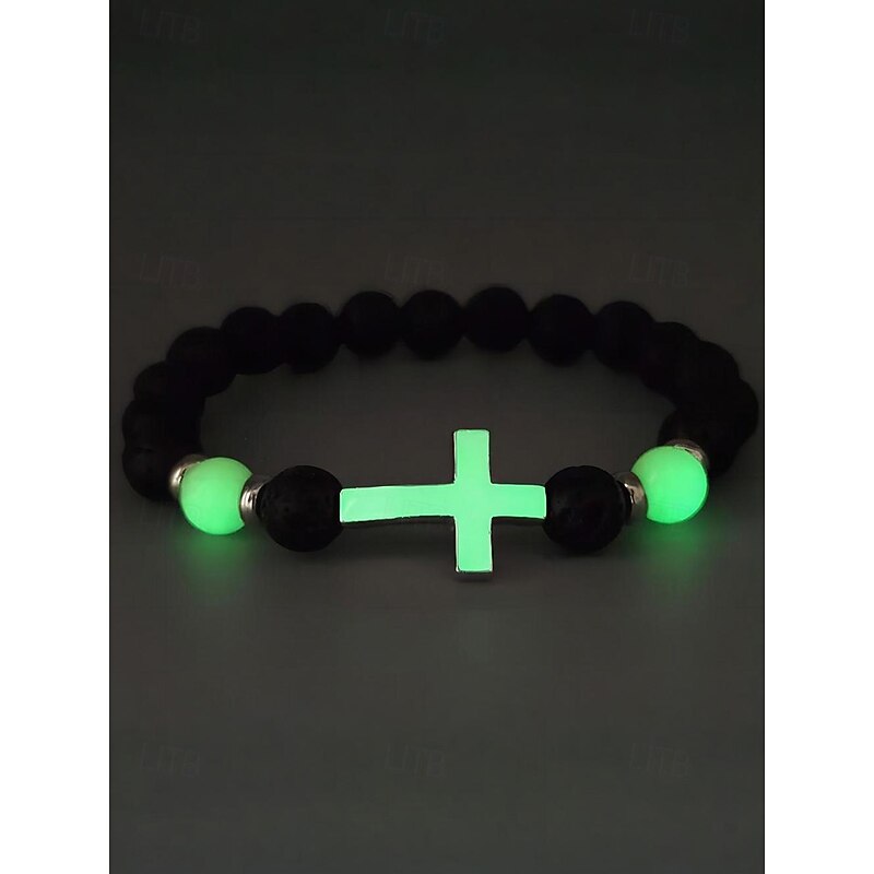 $9.99 - Men's Glow-in-the-Dark Cross Bracelet – Volcanic Rock and Fluorite Beads, Adjustable, Perfect for Halloween and Casual Wear 2025. Shop for cheap Halloween Accessories online? Buy at lightinthebox.com on sale today!