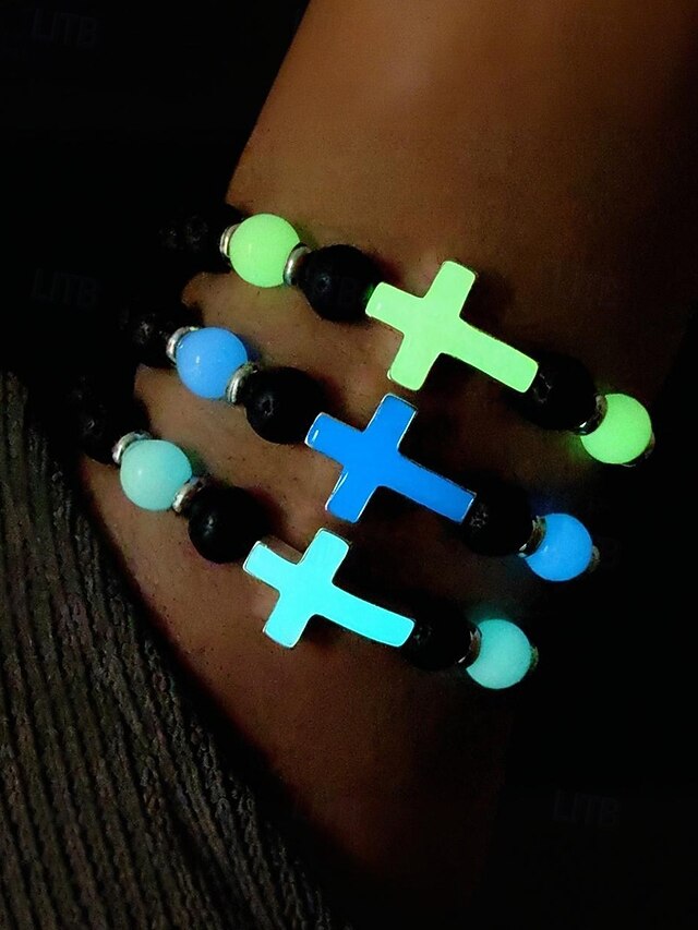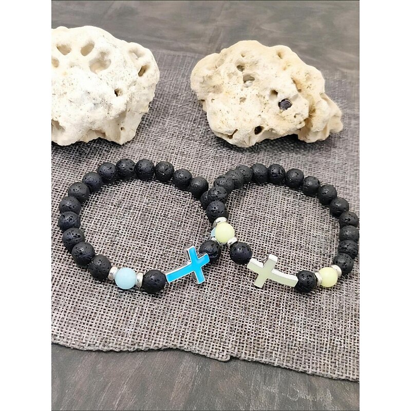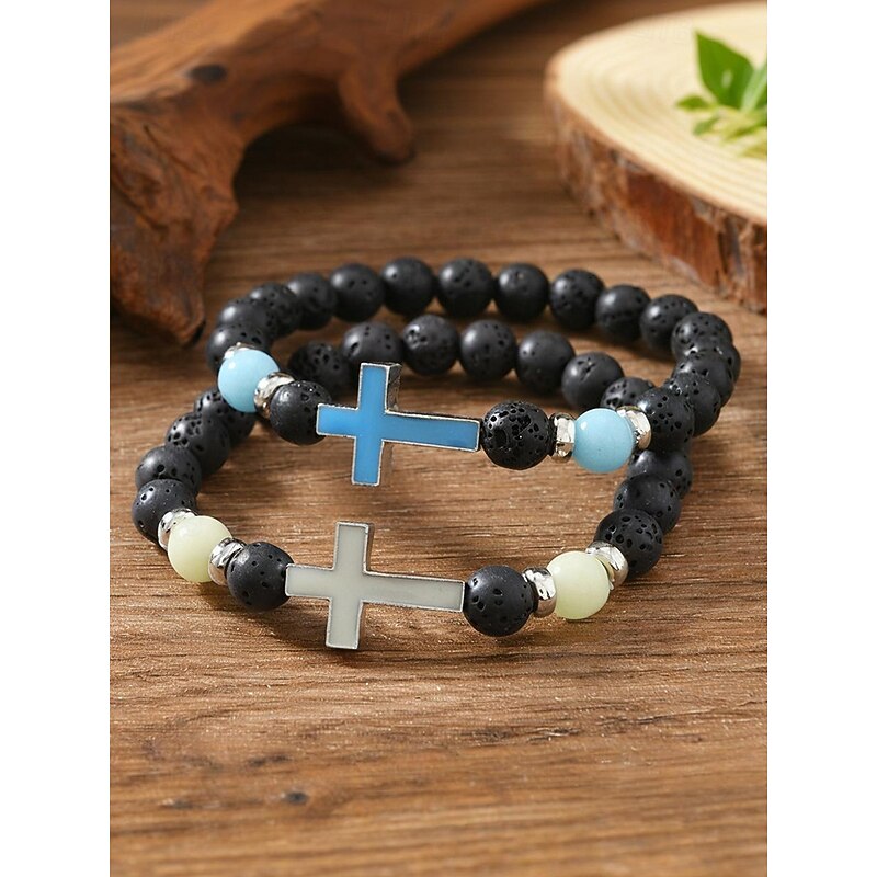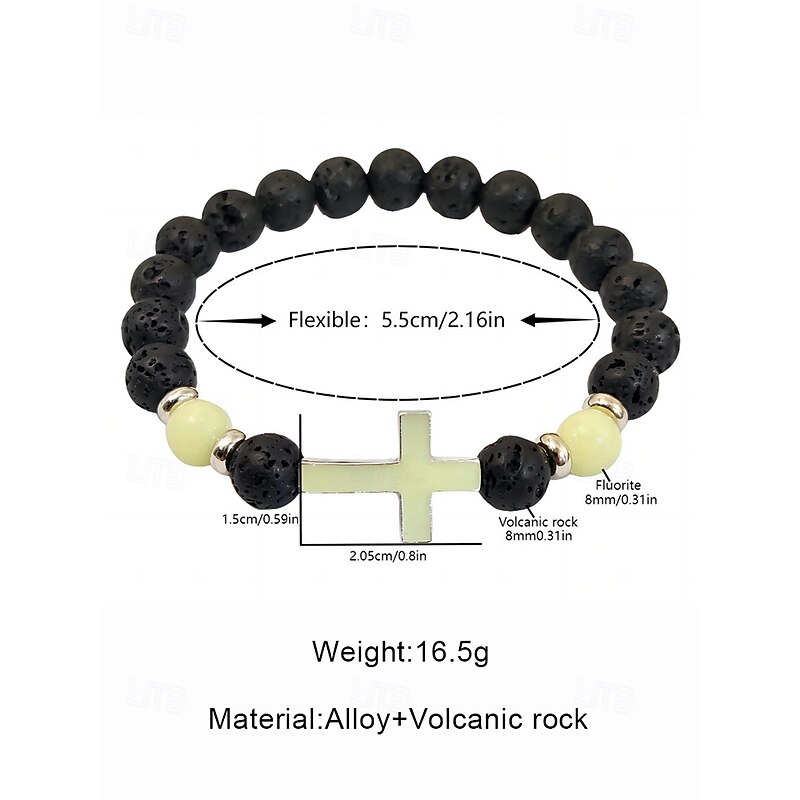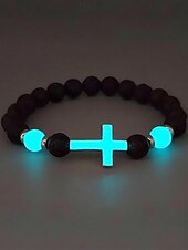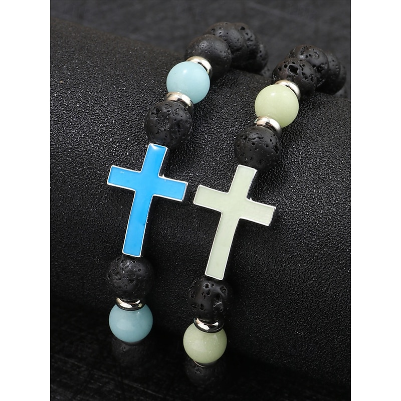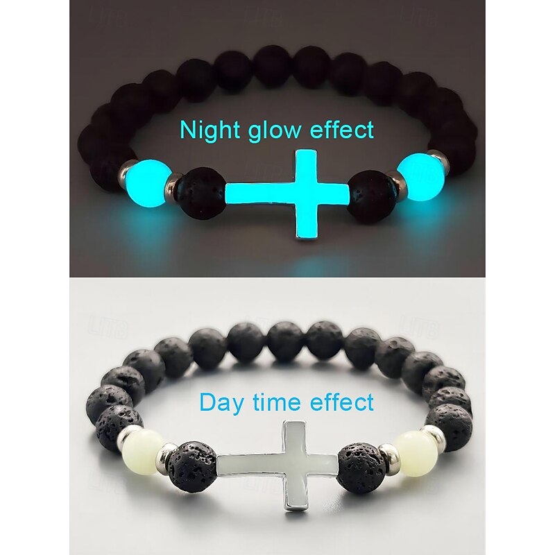 $9.99 - Men's Glow-in-the-Dark Cross Bracelet – Volcanic Rock and Fluorite Beads, Adjustable, Perfect for Halloween and Casual Wear 2025. Shop for cheap Halloween Accessories online? Buy at lightinthebox.com on sale today!