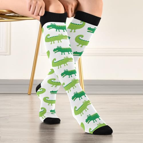 Pigsaly Cartoon Crocodiles Women's Compression Socks Green Alligator Athletic Tube Sock Unisex Casual Knee High Socks Outdoor Sport Socks For Running Hiking Travel 7