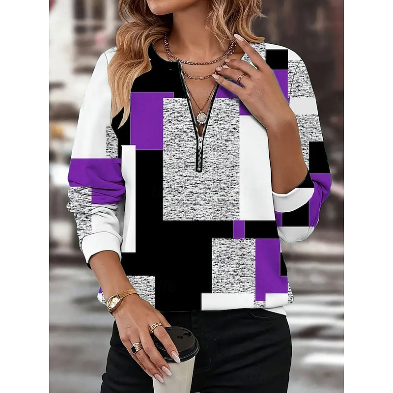 More information about Women's Pullover Sweatshirt Zip Up Sweatshirts Graphic Geometric Color Block Fashion Casual Long Sleeve Crew Neck Regular Tops Street Dailywear Zipper Print Red Blue Purple Orange Green Fall Winter