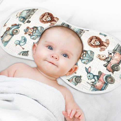 Muslin Baby Burp Cloths, Car and Animals Cotton Soft Burp Cloths for Newborns​​, Extra Absorbent Burp Cloths 1-Pack​​, 22 x 11 Inch 5