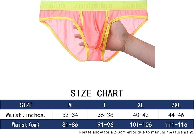 • 【Size】This men's sheer underwear has 5 sizes to choose from. M=32-34",L=36-38",XL=40-42",XXL=44-46",3XL=48-50".