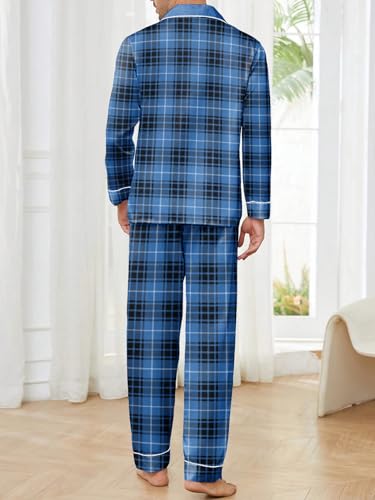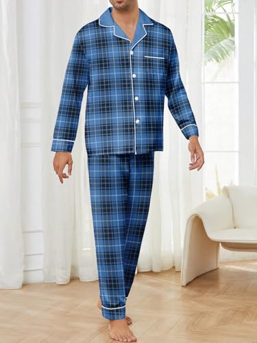 Mens Plaid Button Front Flannel Pajamas Set Cotton Pjs Warm Soft Lounge 2 Pieces Sleepwear Top with Pockets & Pj Pants 2