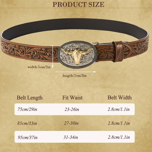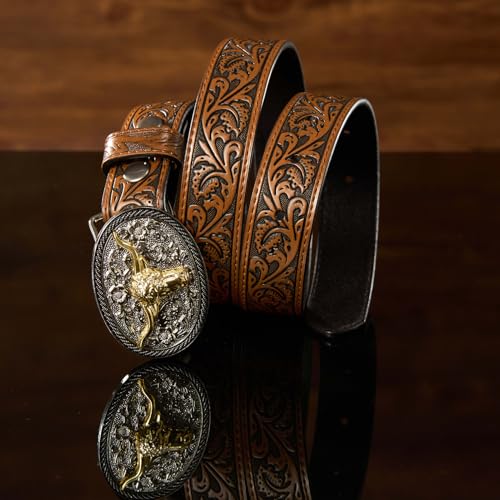• 【Removable Belt Buckle】Beautiful silver Longhorn bull buckle with a steer relief, very shiny and solid. The belt buckle is detachable, and it can be switched out with another belt buckle with no tools required.