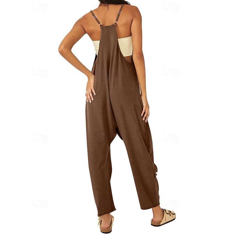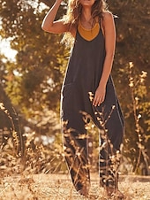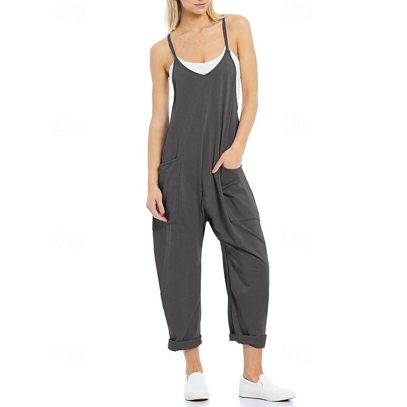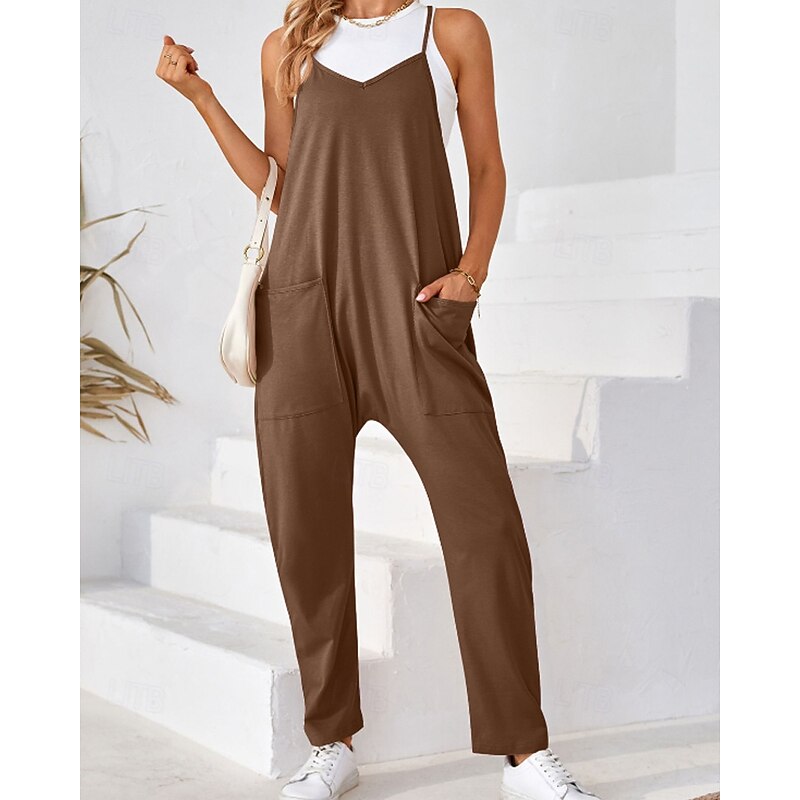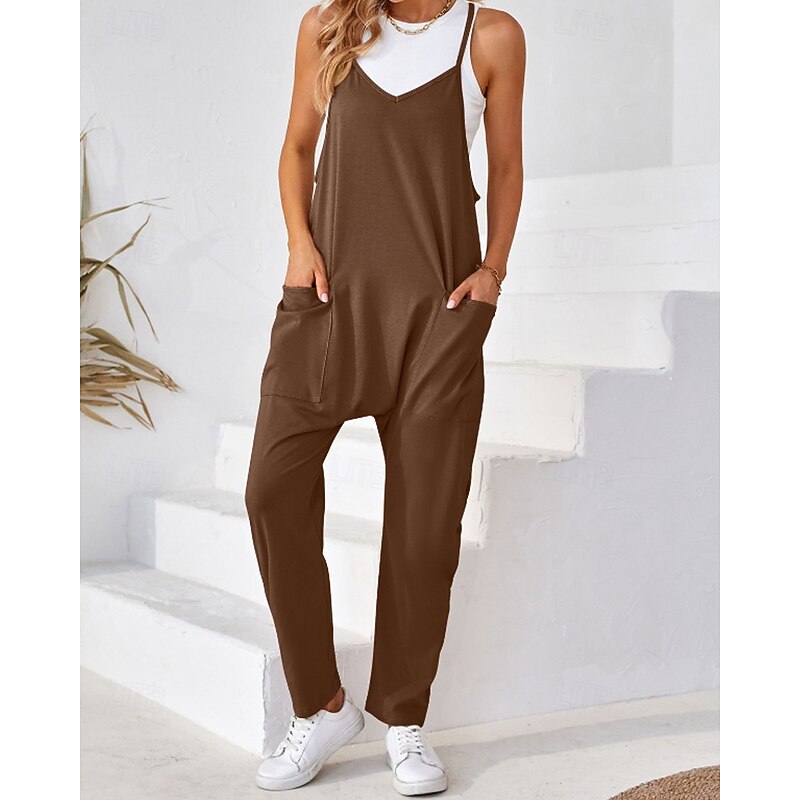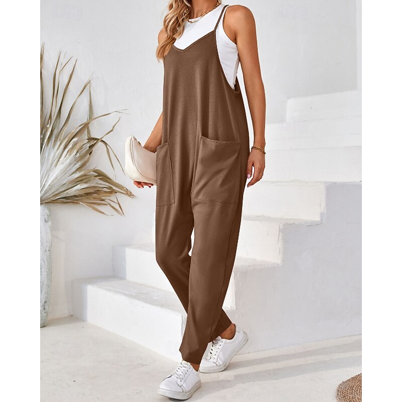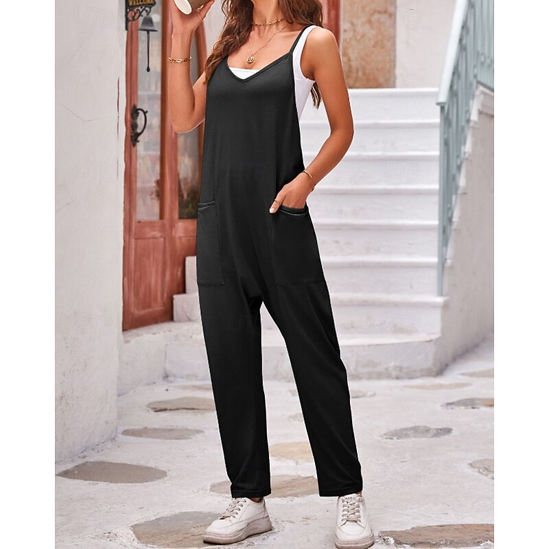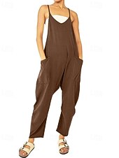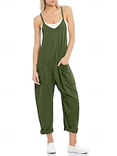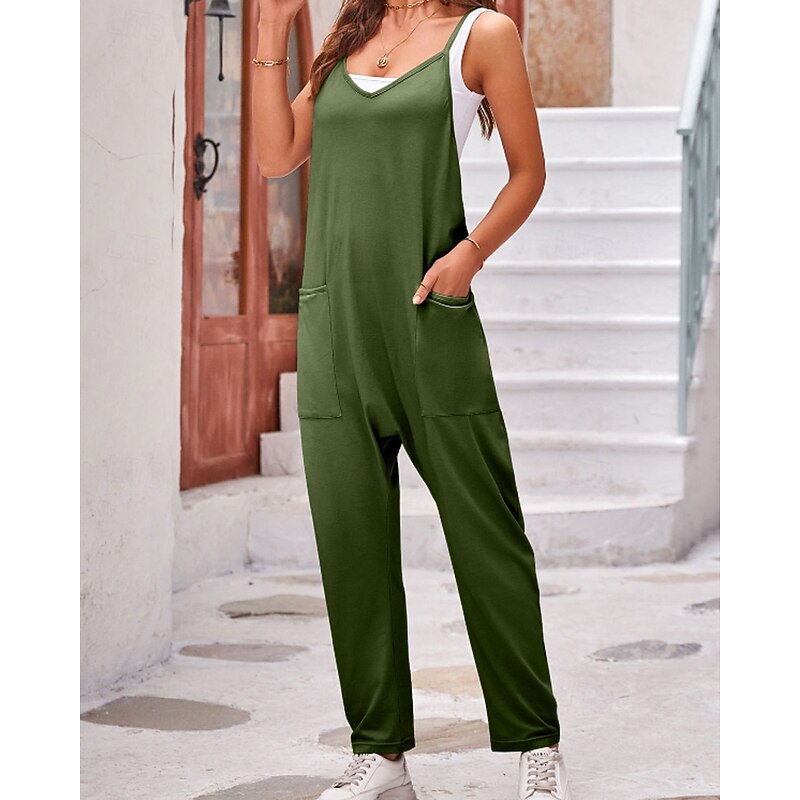 More information about Women's Normal Jumpsuit Streetwear Solid Color Sleeveless V Neck Pocket Street Going out Regular Fit Black Army Green Khaki Summer
