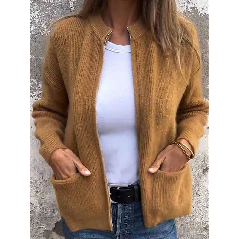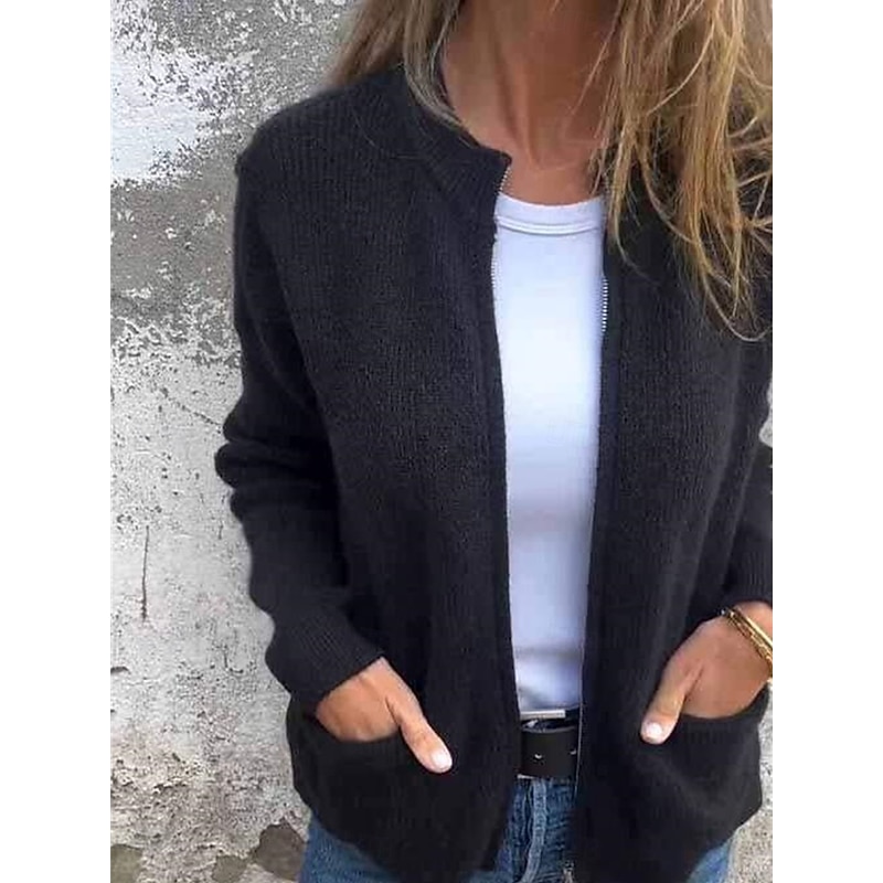 HOT ! Women's Coat Comfortable Breathable Pocket Fashion Daily Plain Training Outdoor Casual Open Front Short Stand Collar Regular Fit Long Sleeve Outerwear Black Orange Gray Fall Winter