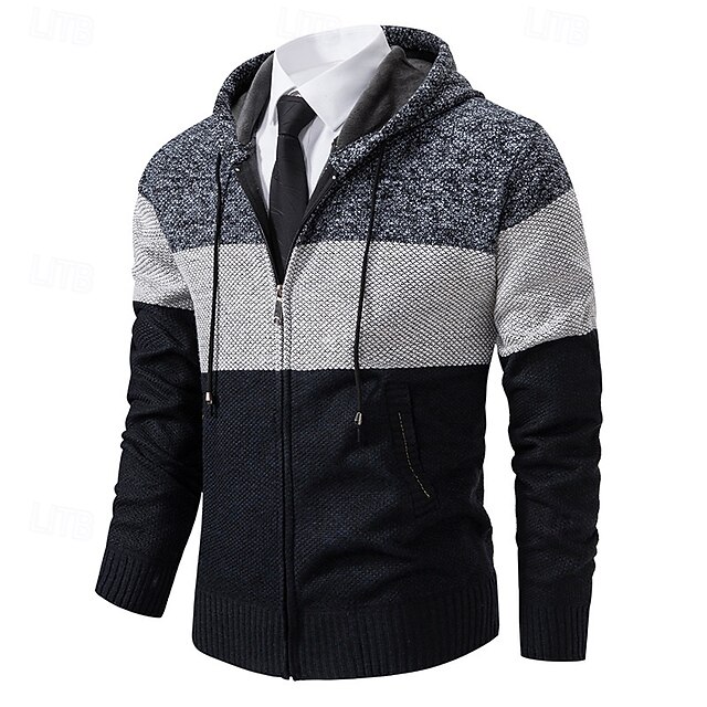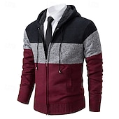 More information about Men's Sweater Dress Sweater Cardigan Sweater Zip Sweater Knit Sweater Ribbed Knit Regular Tops Color Block Knitted Plain Hooded Fashion Shawls Business Casual Clothing Apparel Fall Winter Burgundy