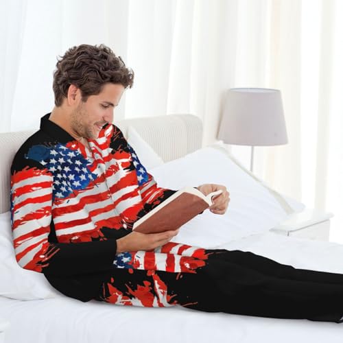 More information about America Flag Of Colorful Splashes Mens Pajamas Set Button Down Sleepwear Set Long Sleeve Loungewear With Pockets