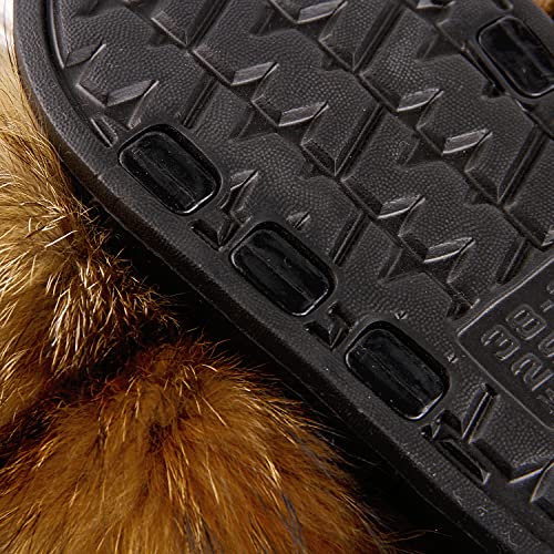 Women's Real Fox Fur Slides, Open-Toe Sandals, Indoor and Outdoor Non-Slip Slippers, Soft Pompom 6