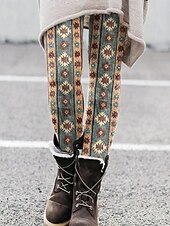 More information about Women's Pants Trousers Leggings Cozy Leggings Vacation Vintage Full Length High Waist Geometric Color Block Elastic Waist Print Breathability Comfortable Stretchy Vacation Street Green Summer Spring