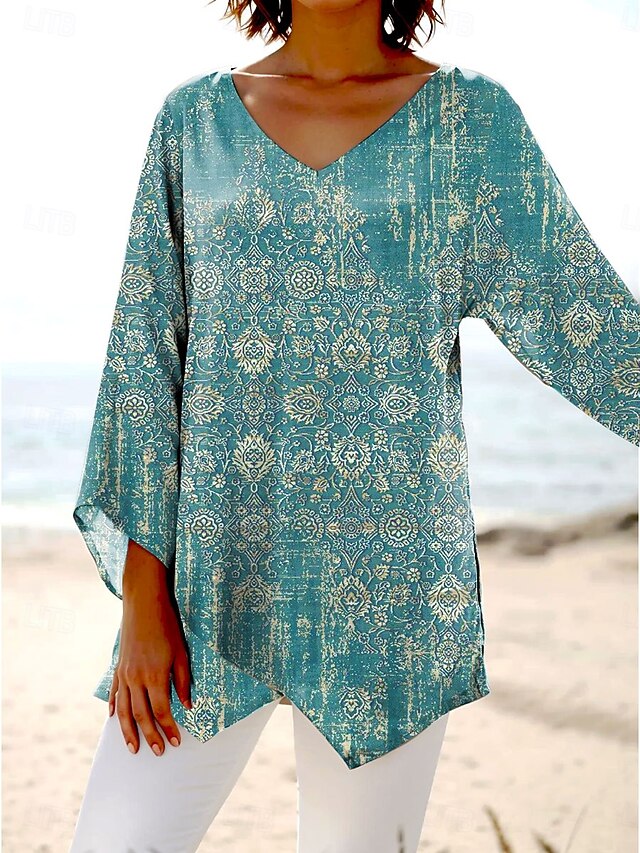 This Women's Blouse Long Sleeve Asymmetrical Hem Graphic Paisley Hawaiian modern Casual 3/4 Length Sleeve V Neck Regular Tops Daily Holiday Going out Print Blue Purple Green Summer Spring Fall combines elegant design with practical functionality. Every detail has been carefully considered to ensure you get the best possible experience. The premium construction means this product will serve you well for years to come.