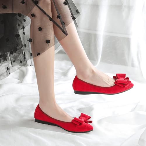 Women Ballet Flats Fashion Bowknot Suede Comfort Pointed Toe Slip On Dress Shoes 6