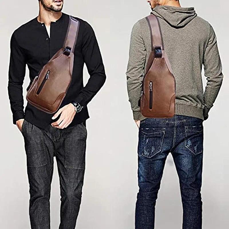 More information about Men's Crossbody Bag Shoulder Bag Chest Bag Leather Outdoor Daily Holiday Zipper Large Capacity Waterproof Lightweight Solid Color Dark Brown Black Brown