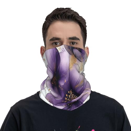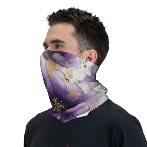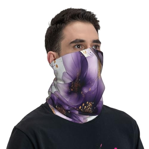 Watercolor Purple Flowers Pattern Neck Gaiter Face Mask Scarf Bandana Head Wrap Uv Protection Balaclava For Sports