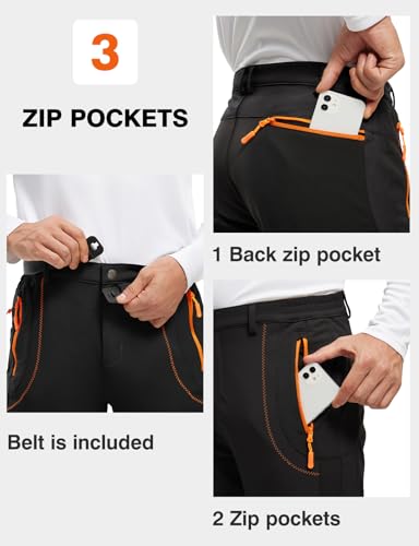 TBMPOY Men's Snow Ski Hiking Pants Waterproof Winter Fleece Lined Pants Camping Skiing Ice Fishing Pants with Belt 4
