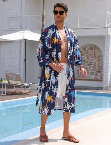 More information about ODIZLI Men's Kimono Robe Tropical Print Long Sleeve Open Front Robe with Belt Japanese Bathrobe Nightgown for Beach Vacation