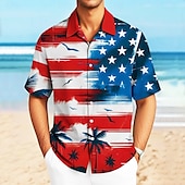 More information about Independence Day Men's American US Flag Patriotic Shirt Casual Shirt Cuban Collar Shirt Short Sleeve Fashion Casual Holiday Streetwear Summer Spring Camp Collar Shirt 3D Print Button Up Shirts White