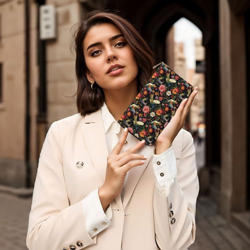 Colorful Hummingbird Flowers Print Wallet Women Men, Long PU Leather Wallets for Women, Cute Womens Travel Wallet Purse Pouch with Zipper Pocket
