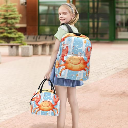 Kids Backpack Set, Cartoon Cute Red Crab Waterproof Cooler Backpack, Backpacks Sets for Girls 1